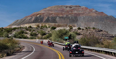 I was riding two bikes in front of the camera man... I have the yellow dayglo jacket on with the silver helmet.. The Can Am looks like the odd man in with all the goldwings... Remember I blogged that they rode right thru the shear cliff walls, but Chet did take pictures... I'm not that good with the bike to ride and take pictures at the same time....