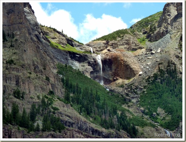 Telluride is in a box canyon, and as you head East from downtown, you go past the city park and up into the canyon. There are two water falls that must be the start of the creek that flows thru town.